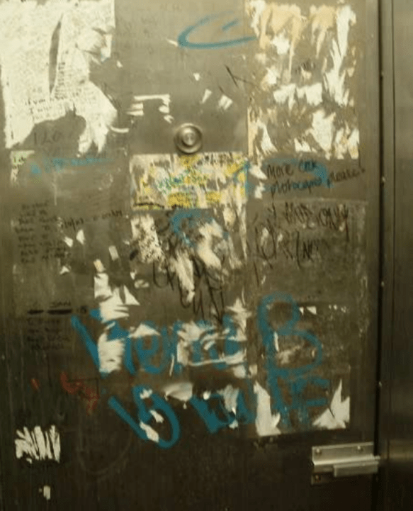 Work No.15; The Alt’ Turner Prize Winner Posted on September 12, 2005 by Michael St.Mark . The Alternative 2005 Turner Prize Winner Found work. Felt-tip, aerosol, paper, biro and unknown substances on stainless steel.) Toilet door, Muswell Hill, London. c. 2005, Michael St.Mark Share this: Click to share on X (Opens in new window) X Click to share on Facebook (Opens in new window) Facebook Like Loading... Related