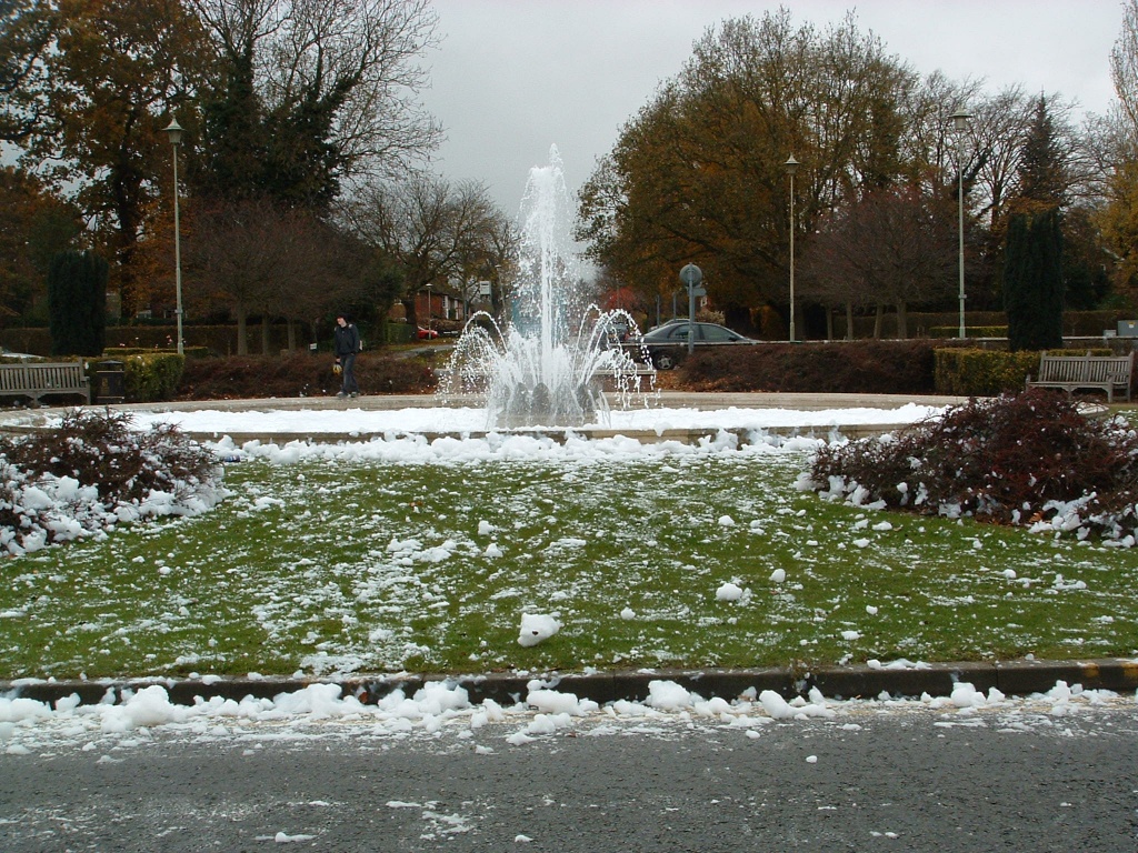 All we know is …. he’s called ART AXIS, our resident direct action Dada artist and he wants to not wish but give you all a Merry DADA White Christmas, in probably the only place in the entire UK this year, courtesy of 10 X 5 litres of a well-known brand of washing up liquid poured into Sudbury municipal fountain at 6am this very Xmas eve morn. A strong to gale force westerly blew the huge suds tumbling through the town, causing major hilarity and traffic disruption among the feverish last-minute Xmas shoppers..:yes::))
