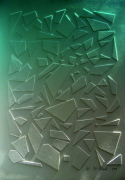 Larger cropped segment from Infinitude II illustrating its jagged shapes’ variable shadow-through-highlight borders and the colour-change function absolutely integral to the work, as stated by the artist on its release in January 2006 ( pre-dating Wolff Olins Olympic brand release by over a year ).
