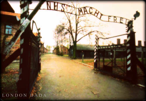 “NHS MACHT FREI” ( The NHS sets you free ) in memory of innocent victims.