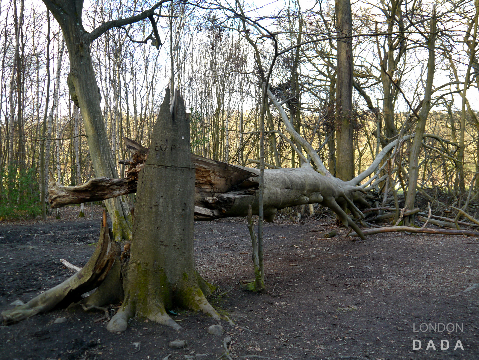 “Same old story – it’ll never get old “. Storm-felled Beech tree. Trent Park, Cockfosters N. London.