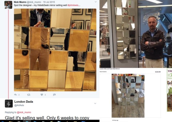 - Update May/June 2017 this gets noticed. Not so flattered when so-called designers like Nick Munro start making money out of someone else’s concept and artwork.. Six weeks only after the above post date stamp for Infinitude III, the Digital Mirror, Munro’s identikit ” Hide and Seek mirror” is out of production and on sale at John Lewis.. now at £190