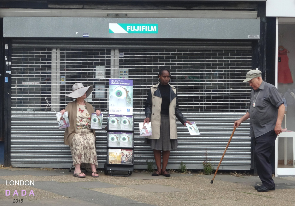 A Jehovas Witnesses’ Saturday morning magazine stall and conversion pitch, Camden Town NW1