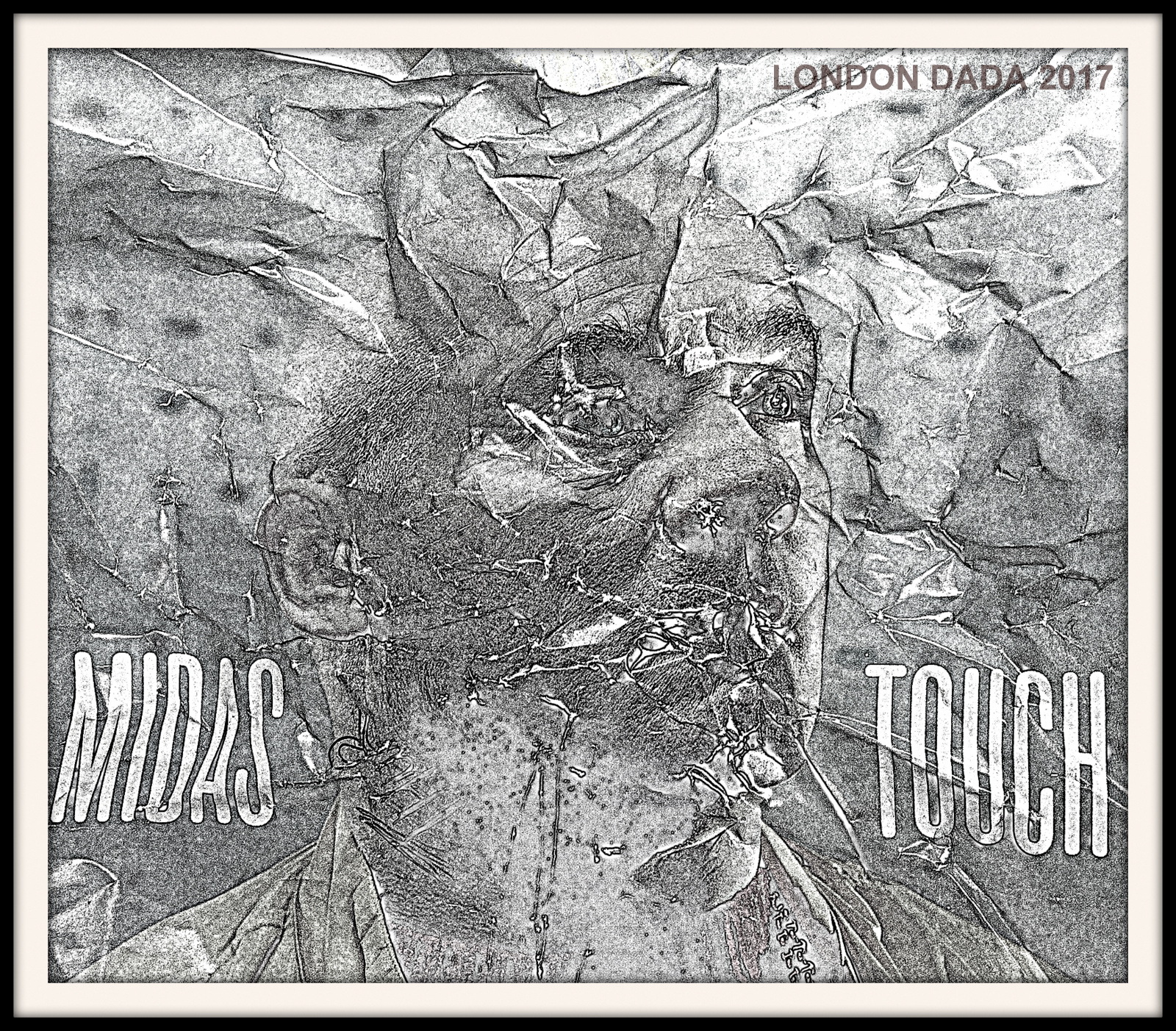 Multi-stage digital image manipulation sequence of re-photos of bespoke-crumpled Sunday Times cover shot of Damien Hirst, December 2017. Backdrop ink grid pattern; Michael St.Mark