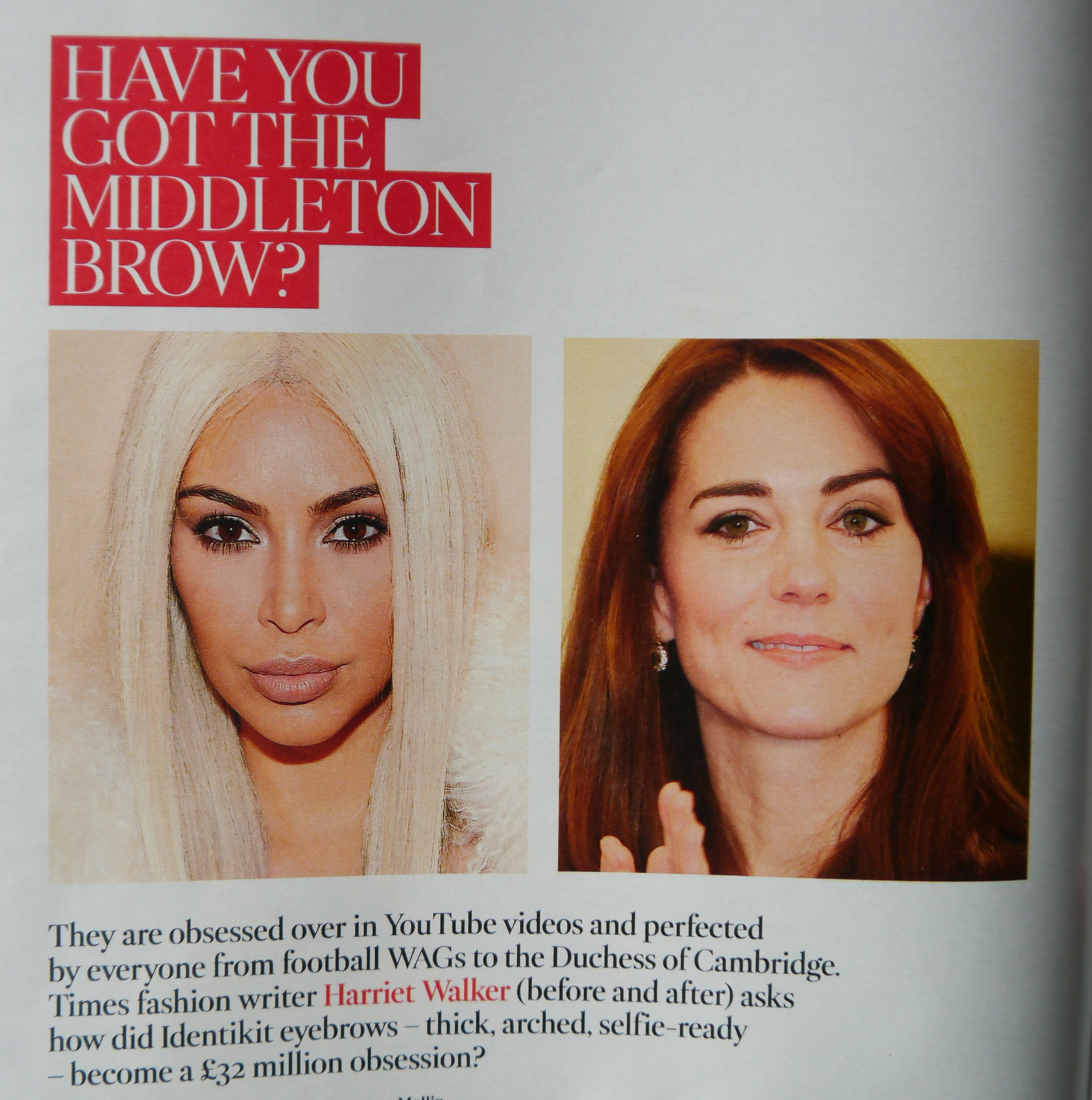 ” Thick, arched and selfie-ready”; do remember ladies, one isn’t absolutely up to Tatler fashion speed without the ‘Middleton brow’
