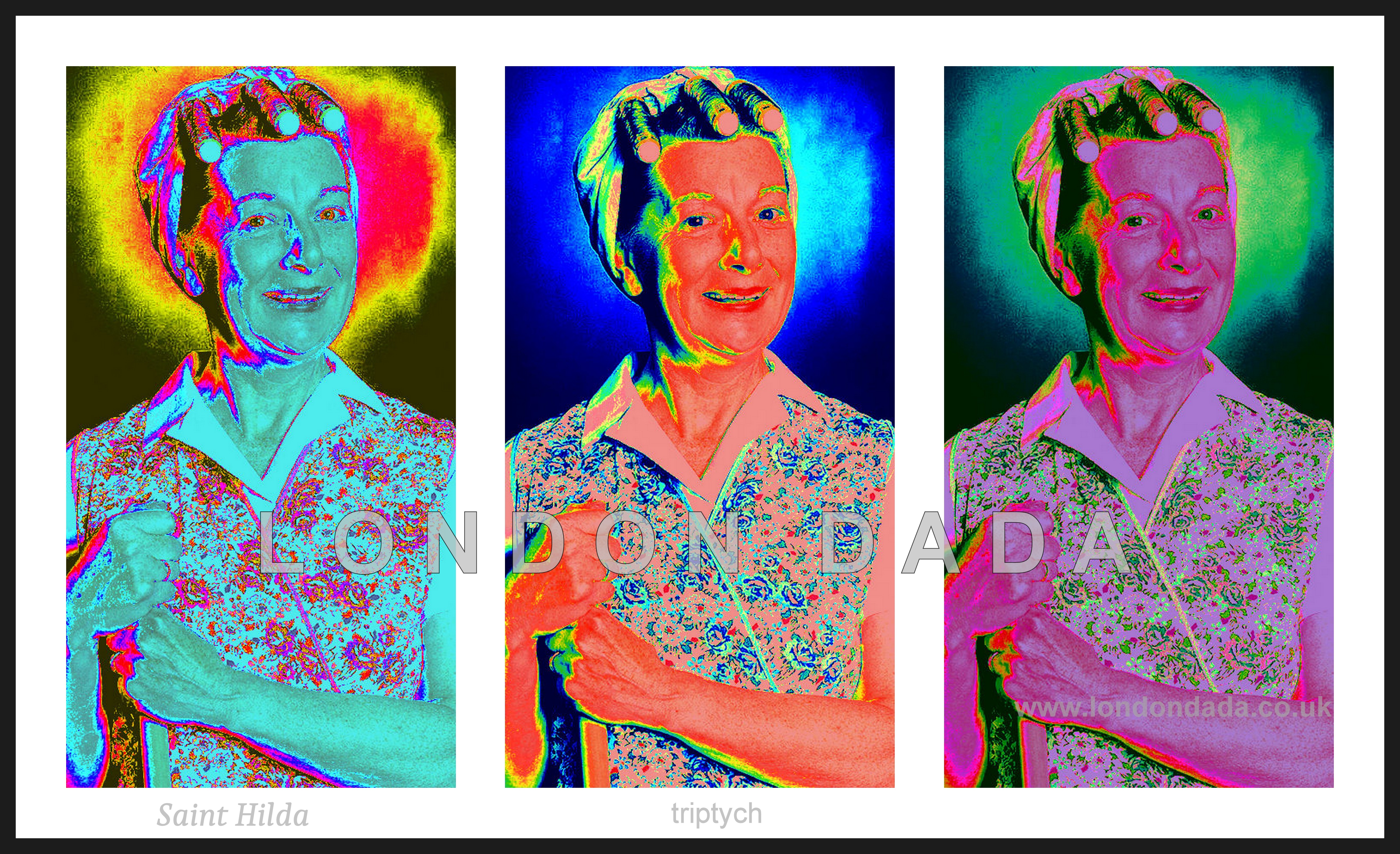 The blessed Hilda Ogden, haloed in light; immortal mop-wielding hair curler-totin’ Coro’ star and legend, aka Jean Alexandra, who sadly passed away today to play a starring role in the great Mancunian Soap in the sky.