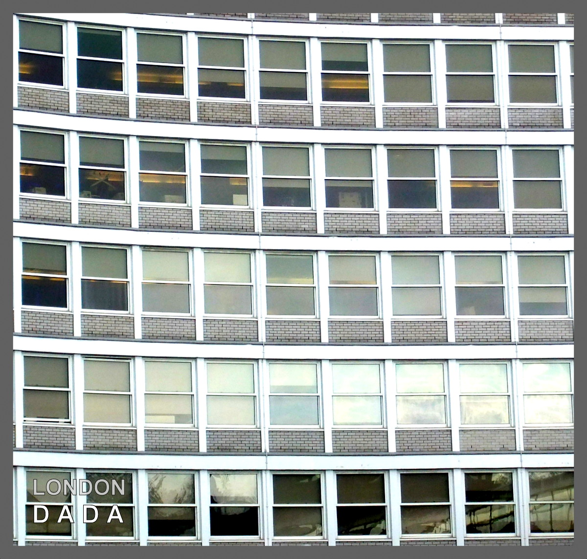 Nine windows across by five windows high cropped digital photograph.