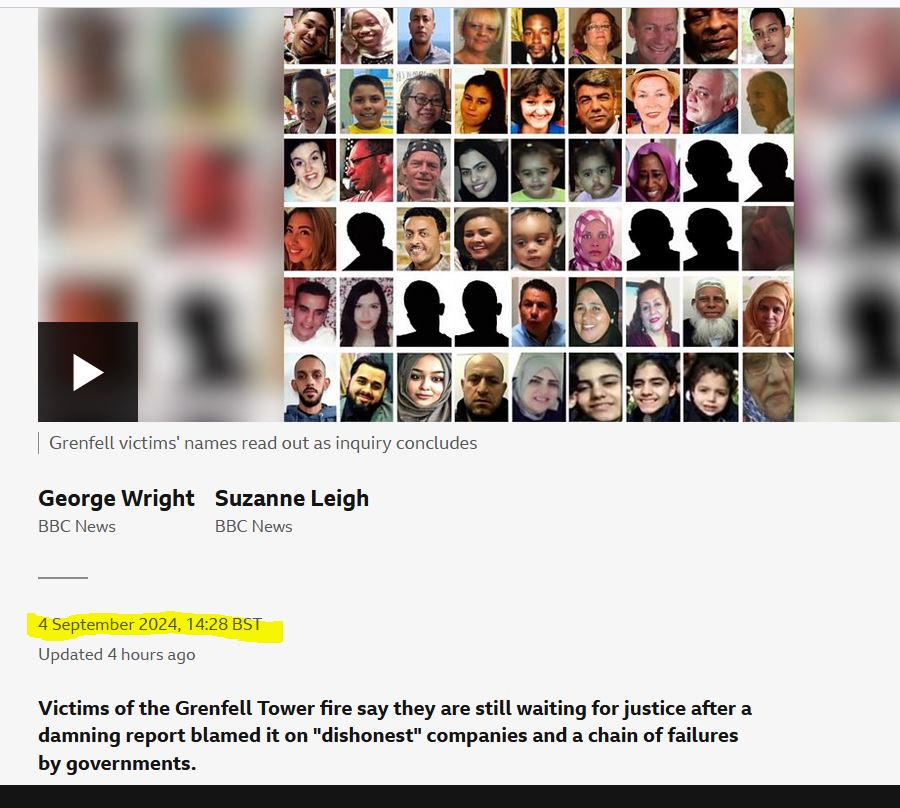 *Update video 2024 Grenfell fire inquiry report;” Government ignored warnings “