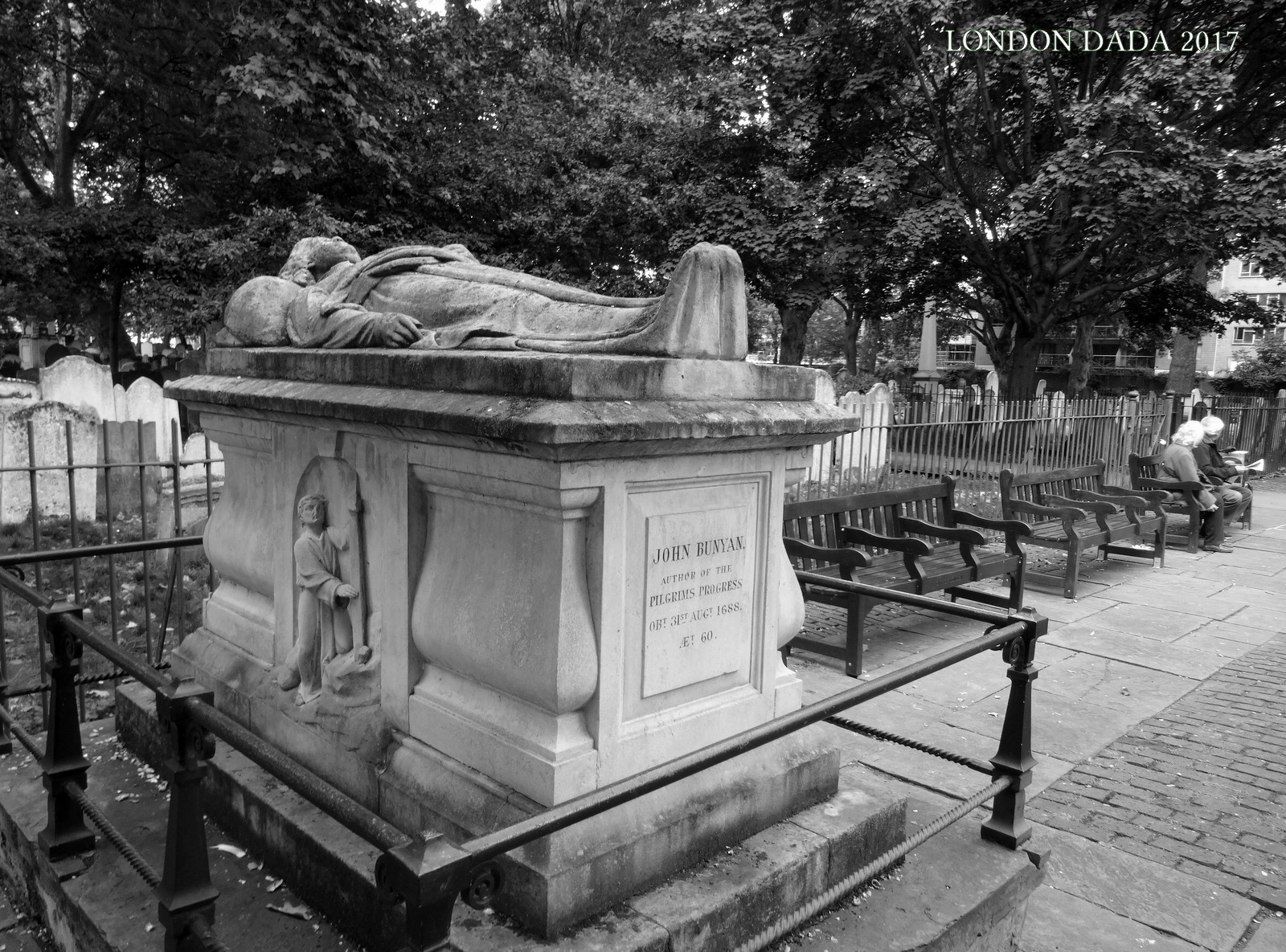 The 17th C. Bunhill Fields tomb of John Bunyon, author of the world-renowned tome The Pilgrim’s Progress