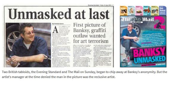 ( See below – on both occasions, Banksy is wearing his “on-duty” end-nose latex prosthetic tip )