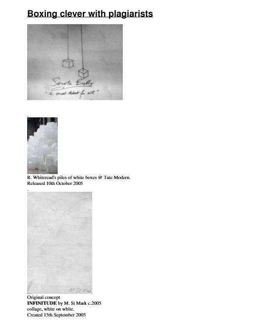 New Dada artist Dingo‘s October 10th work Bank of Formica Topboard (crop), alongside Turner prize-winning artist Rachel Whiteread’s Olympic poster, which she connects somewhat tenuously with future memories of medal-winning celebrations in mind, hence the multiple drinks glasses/bottles ring marks upon a white ( Formica?) surface. Hmm.
